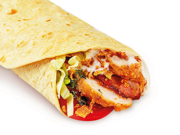 Лепешка пшеничная филе куриное фри беконсалатпомидорлук фрисоус