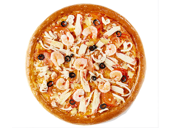 Тесто для пиццыкальмаркреветкакрабовое мясопомидормаслинымасло чесночноеореганопродукт Российскийпродукт Моцарелласоус