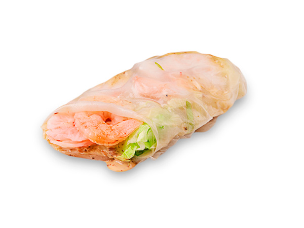 Рисовая бумагакреветкасвежий огурецсалат листовойсоус кунжутно-ореховый.