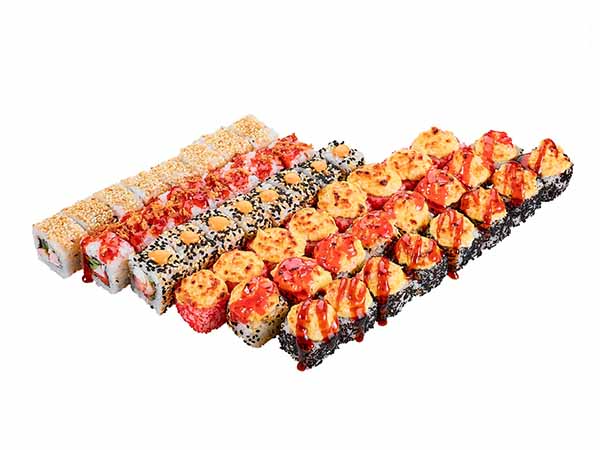 Ролл Калифорния с лососем ХотРолл Калифорния с тунцом ХотКреветка МореКамчатка Темпура ЭбиЧикен.