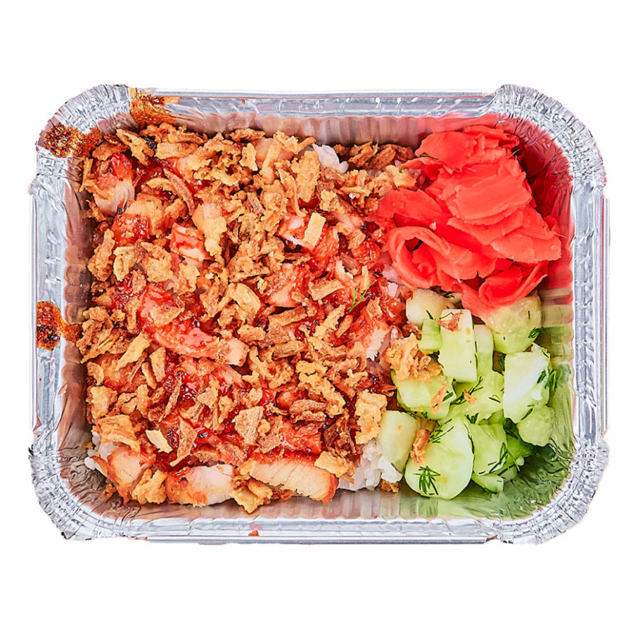 Рис Курица Огурец маринованный Имбирь Лук фри Соус сеульский*
